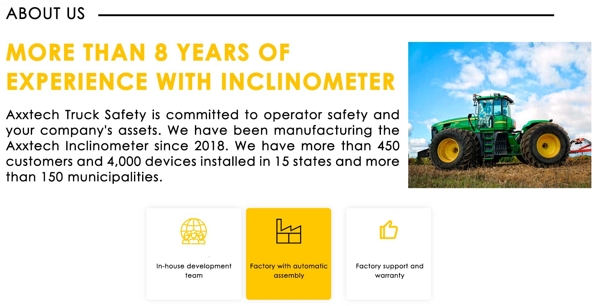 El inclinómetro del tractor de monitoreo en tiempo real Axxtech Evita el vuelco mejora la seguridad midiendo los ángulos longitudinales laterales