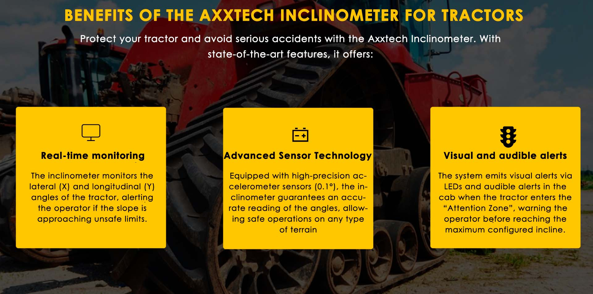 Inclinómetro de tractor Axxtech, monitoreo en tiempo real de ángulos longitudinales laterales, Evita el vuelco, mejora el equipo de protección de seguridad